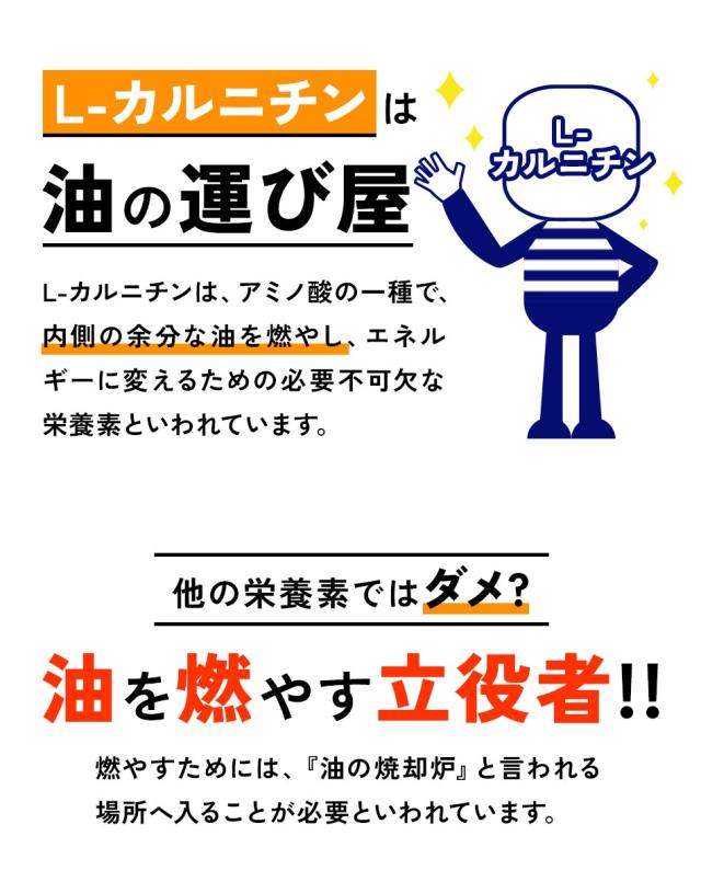 L-カルニチンフマル酸塩(中国製造)、還元麦芽糖水あめ、黒コショウ抽出物/セルロース、ステアリン酸カルシウム、HPC、微粒酸化ケイ素