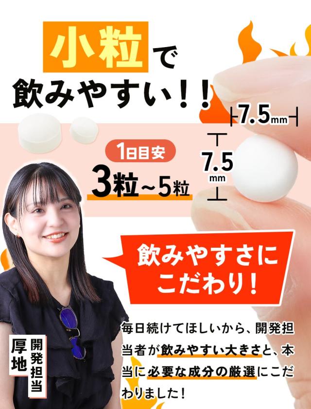 1日に3〜5粒を目安に、水またはぬるま湯などでお召し上がりください。