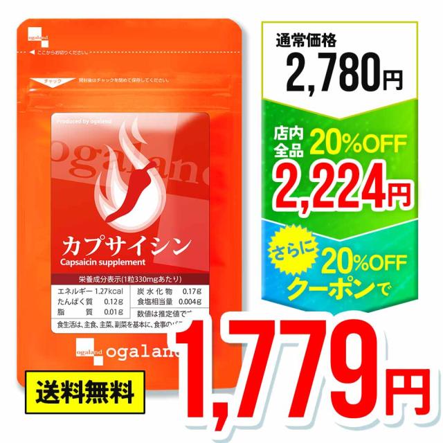 【W割引中!!】◆大容量◆ カプサイシン サプリ (約6ヶ月分) ダイエット サプリ カプサイシン サプリメント 唐辛子 送料無料 オーガランド ogaland 健康食品 美容 健康 運動 _JD _6K 11005