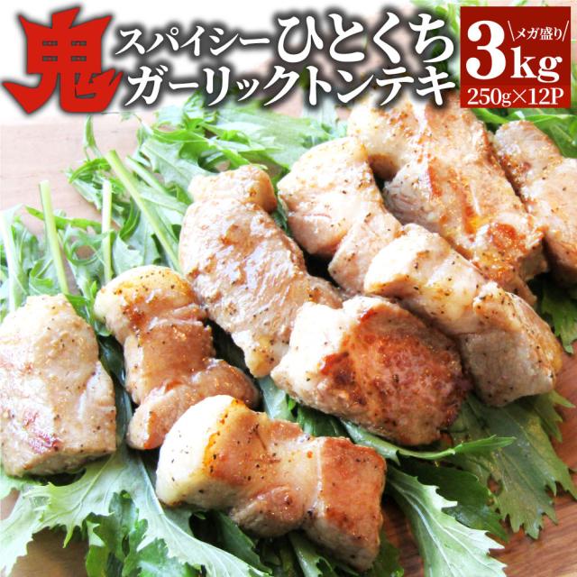 トンテキ 肉 ステーキ 鬼スパイシーひとくちガーリックトンテキ 3kg(250g×12P)贅沢 おトク お徳用 送料無料 通販 お取り寄せ グルメ アウトドア お家焼肉 レジャー お肉の しゃぶまる