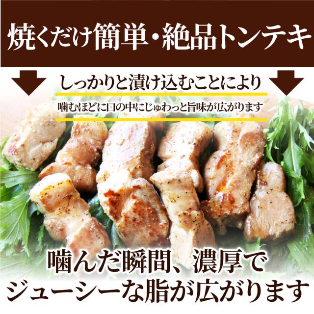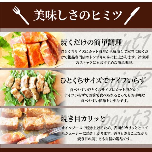 しゃぶまるこだわりの極厚カットとひとくちサイズだから焼くだけでとってもジューシーに仕上がりますご注意)トンテキは必ず中心部まで火を通してお召し上がりください弱火でじっくり中心部まで焼き上げてください。強火で加熱しすぎると焦げや焼き過ぎの原因となりますのでご注意ください。