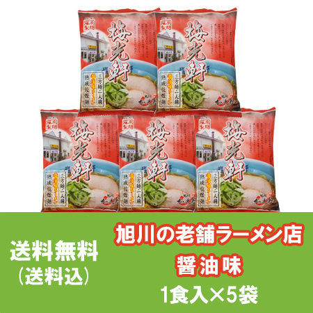 旭川ラーメン 梅光軒 醤油 ラーメン 送料無料 梅光軒 醤油ラーメン インスタント 袋麺 1袋×5 あさひかわ らーめん ばいこうけん しょうゆ らーめん 乾麺 ラーメン スープ付 麺類 正油ラーメン