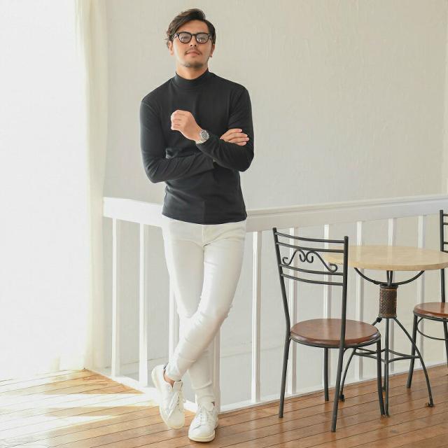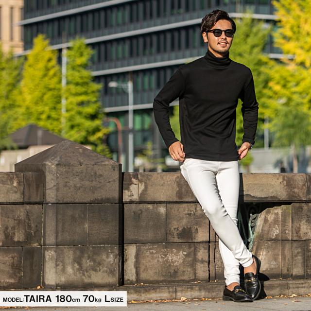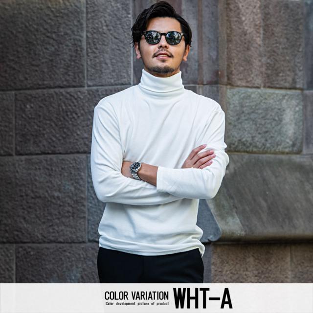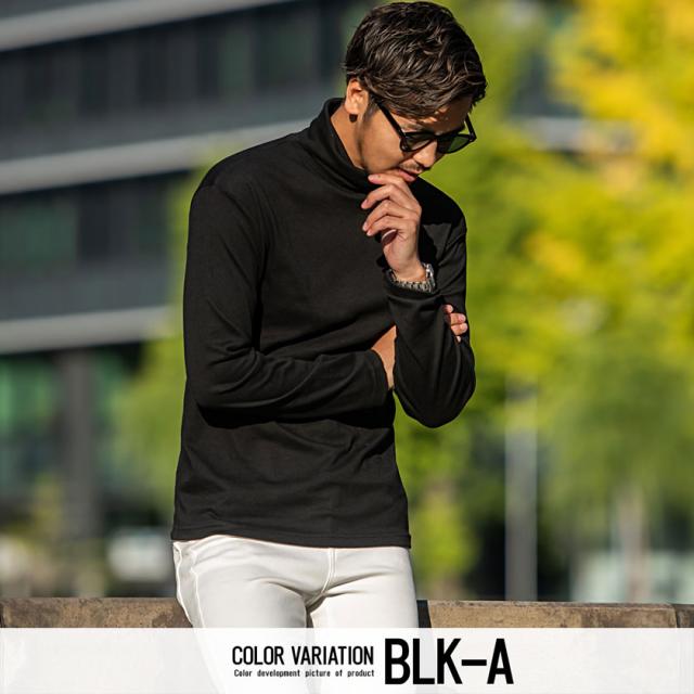 Tシャツ メンズ 長袖 トップス インナー カットソー ロンT タートルネック ハイネック モックネック スムース 暖かい 無地 シンプル ブラック ホワイト 黒 白 M L カジュアル きれいめ CavariA キャバリア 秋 冬 2021 即日発送 [CAB21-12]