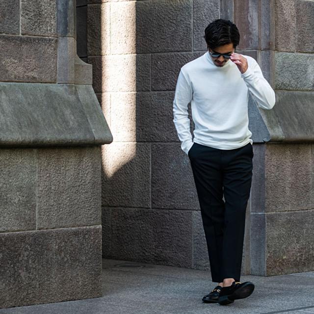 定番人気のタートルネックと、少し短めで首も見えるのでスッキリとした印象になるハイネックの2種類をご用意。