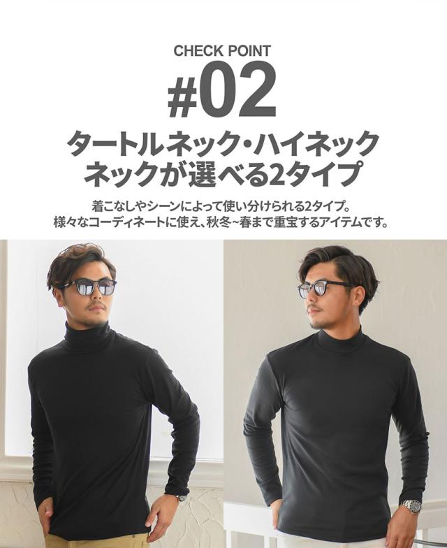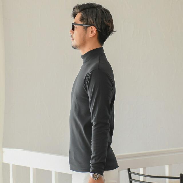 柔らかく滑らかな肌触りのスムース素材を採用したハイネックとタートルネックの長袖Tシャツ。