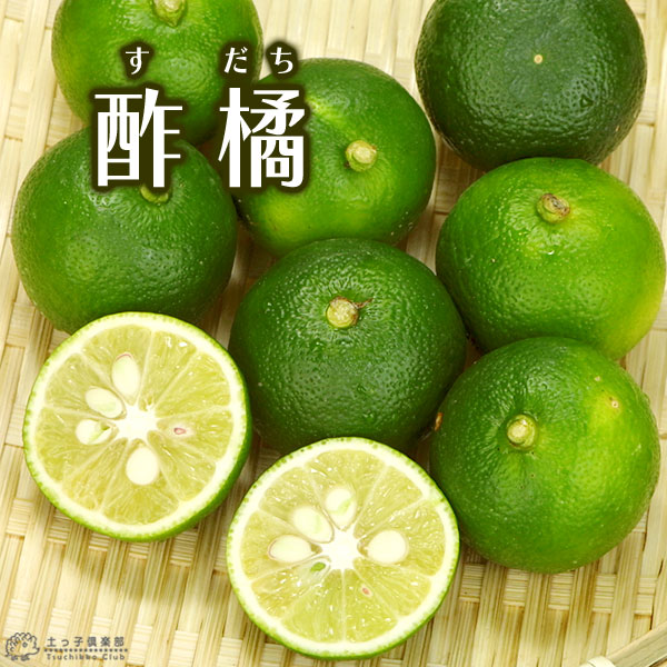 スダチは爽やかな香りとまろやかな酸味の30〜40gの小さな果実です。果汁を酢として使われたことから「酢橘(すだち)」の名がつけられました。ビタミンCやクエン酸が豊富です。熟す前の果皮が薄く、風味が強い果実が収穫され、主に焼き物や鍋等の薬味、薄くスライスしてジュースや焼酎などの風味づけにも使われています。スダチの皮と汁をそうめんの漬け汁に入れて食べると絶品!だそうです。