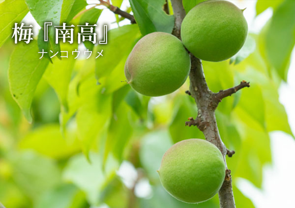 梅生産量日本一の紀州和歌山。「南高」は数ある梅の中でもトップブランド品種になります。果実はとっても大きいのにタネは小さめ、果肉が厚く柔らかいのも人気で、梅干しや梅酒に加工されます。花も淡桃色で美しく、桜とならび梅の花は古くから観賞用としても人気があります。