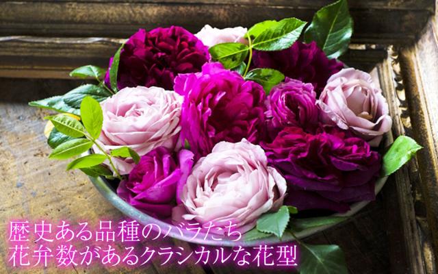 オールドローズは、古典的でロマンティックな花姿や、濃厚な香りが魅力!