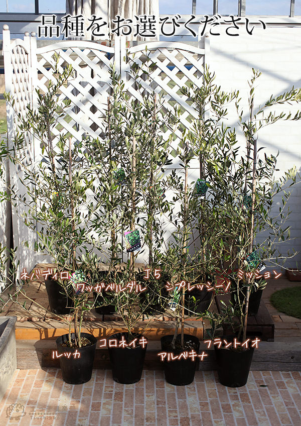 土っ子倶楽部では、4年生の7号(21cm)ポットの株立ち大苗オリーブ9品種を厳選しました。高さのある大きな苗木ですので、シンボルツリー用にもオススメです。(苗木の生産で有名な田主丸町のオリーブです)