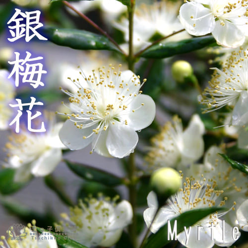 ハーブとして「マートル」の名前でもよく知られています。葉に香りがあることから「銀香梅(ぎんこうばい)」とも言われます。
