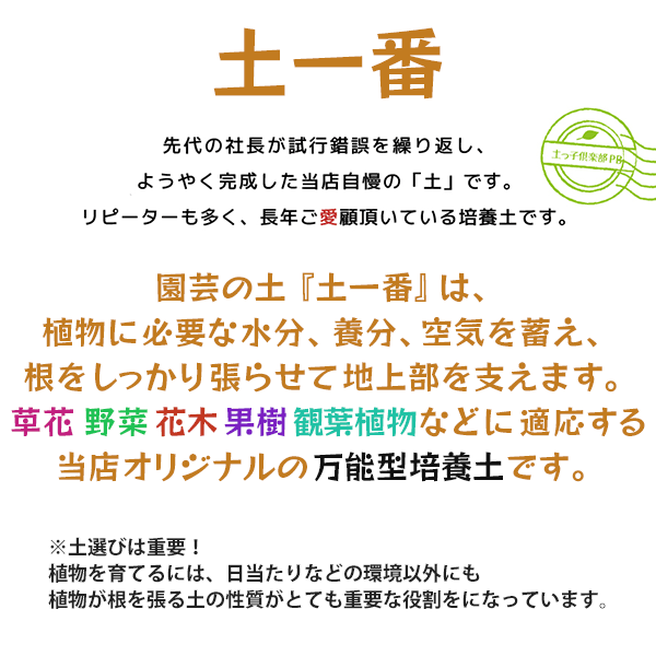園芸の土「土一番」は、改良に改良を重ねて作られた園芸用土です。