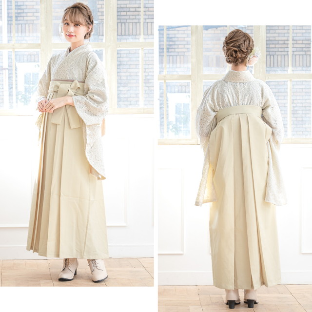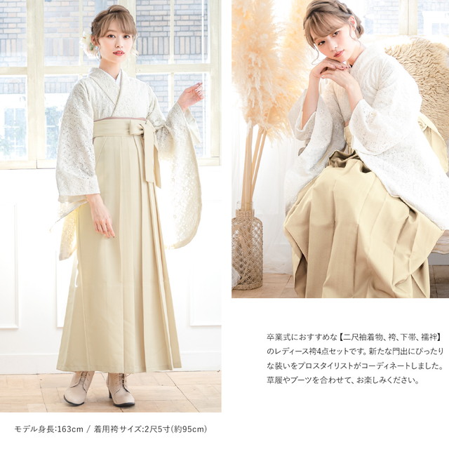卒業式 袴セット 購入 大学生 レディース 小学生 袴 レース ホワイト アイボリー 花 洗える ショート丈 小振袖 女性 袴4点セット 送料無料