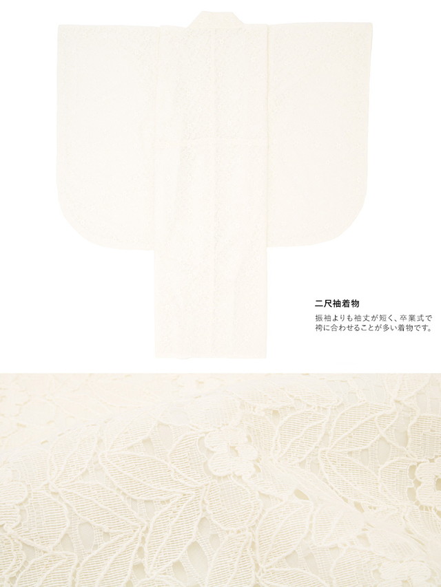 着物は、透け感のある花の文様のレース生地が優美なデザインです。
