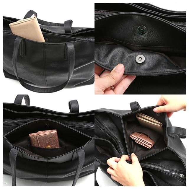 トートバッグ 大きめ 通販 レディース メンズ ショルダーバッグ ファスナー付き おしゃれ 通勤 通学 大容量 フェイク レザー 肩掛けカバン ビジネスバッグ シンプル ブラック 黒 大学生 リクルートバッグ CMK20−0729