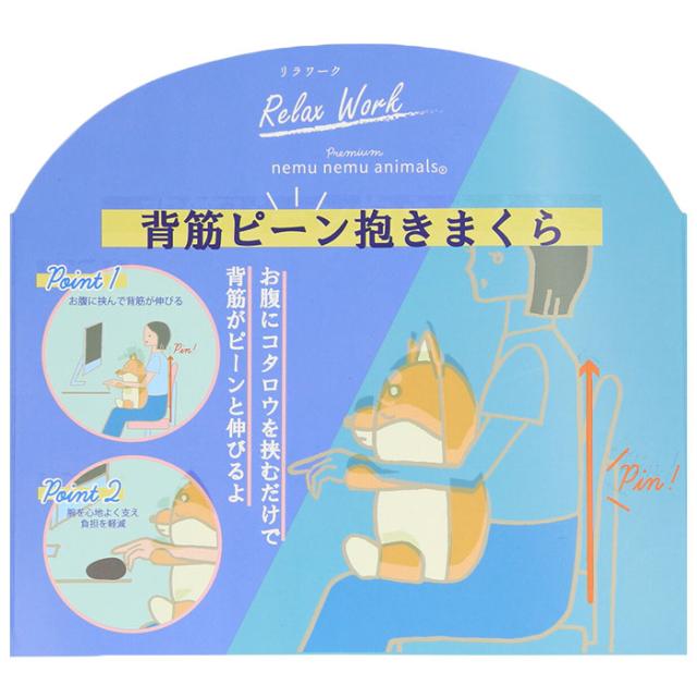 | 商品説明 | ・脱力系の動物たちのだらんとした寝姿がかわいい♪背筋をピーンとしてくれる抱き枕。(対象年齢:6歳以上) ・リラックスしながら仕事や勉強などが出来るようにという想いから生まれた「リラワーク」シリーズ。 ・癒し系のアニマルたちが、大変な作業中も優しく癒してくれる♪ ・イスに深く腰を掛けてアニマルをお腹に座らせると、お腹の中にある程よく固い芯が背筋をサポート。自然に背筋が伸びて腰への負担を軽減。 ・抱きまくらの腕部分が、疲れた手を心地よくホールド。 ・背もたれに置いて使ってもOK。 ・1度抱きついたら離れられないほどの心地よさ♪自宅やオフィスなどでも手軽に使える、リラックスアイテム。 |