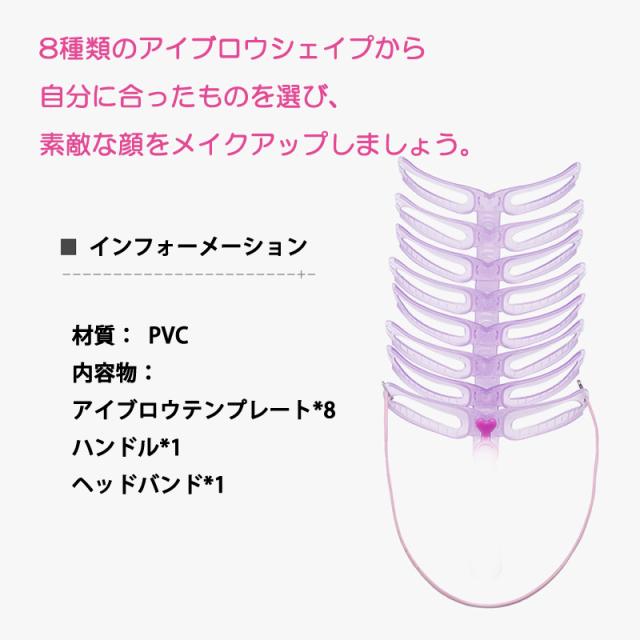 眉毛テンプレート 8本入 ゴムヘッドバンド付き 眉毛メイク アイブロウテンプレート シェイプ グッズ 型 見本 枠 美人眉 モテ眉 開運 左右対称 ポイント消化