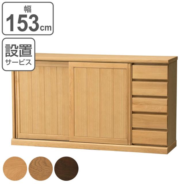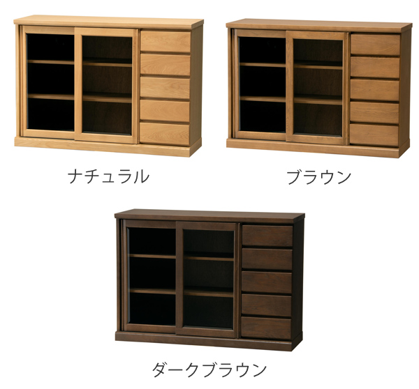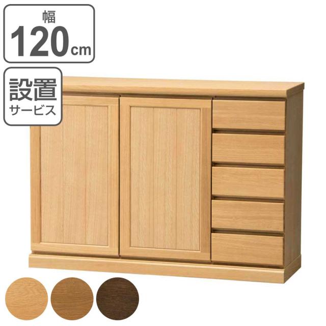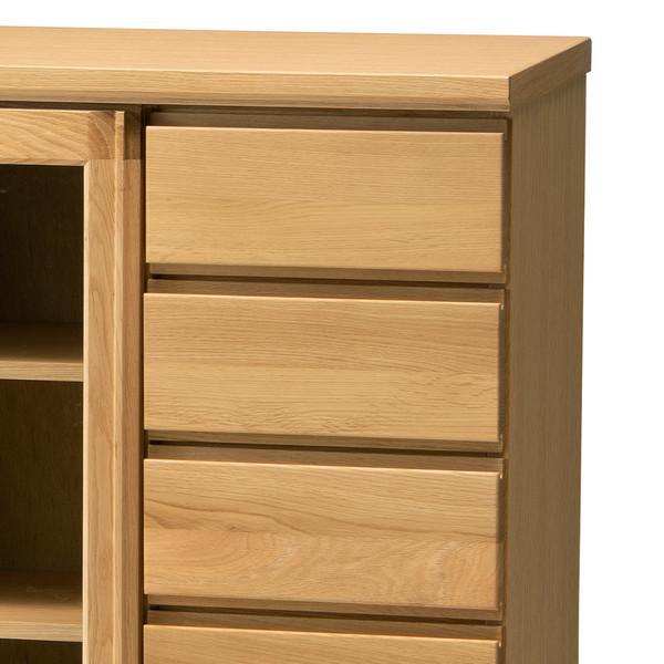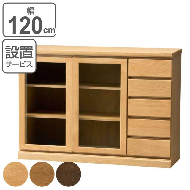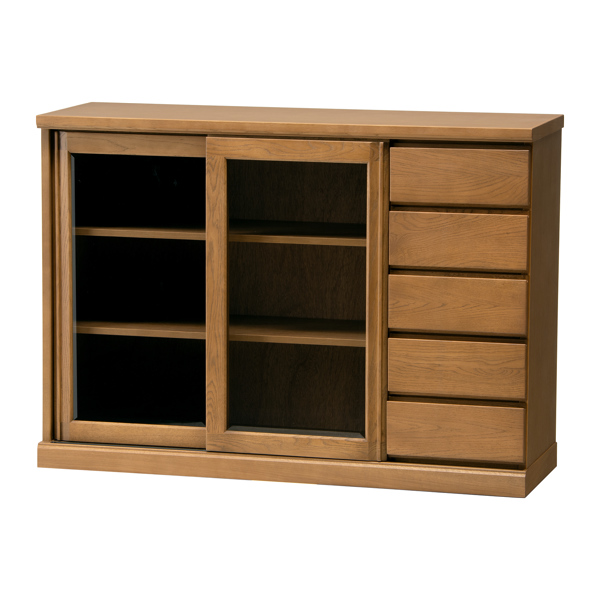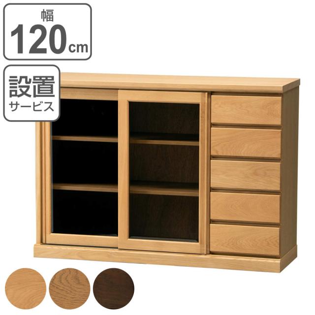 サイドボード スライドガラス扉 引出し5段 天然木 FIGARO 幅120cm ( 開梱設置 収納棚 窓下 キッチン キッチンカウンター ガラス戸 木製 日本製 完成品 収納 キッチン収納 引出し収納 リビング収納 オーク 国産 おしゃれ )