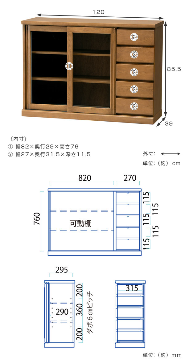 | サイズ | 約 幅120×奥行39×高さ85.5(cm) |