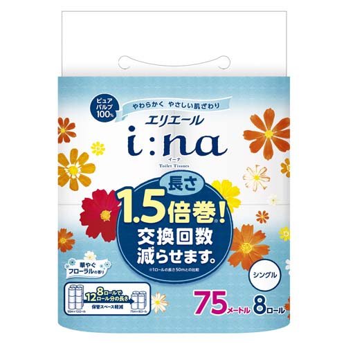 エリエール イーナ トイレットティシュー1.5倍 シングル(8ロール)[トイレットペーパー シングル]