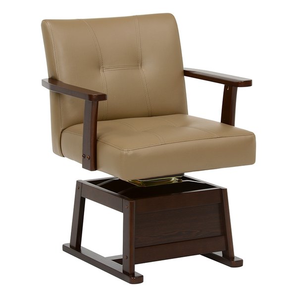 萩原 (ハギハラ) 回転チェア(こたつ椅子) 肘付き 木製フレーム 高さ調節可 ダークブラウン KC-7589DBR