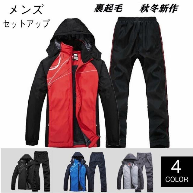 メンズスウェットウインドブレーカー防寒 上下セットアップナイロンジャケット スポーツウェア 厚手秋冬 大きいサイズ 新作