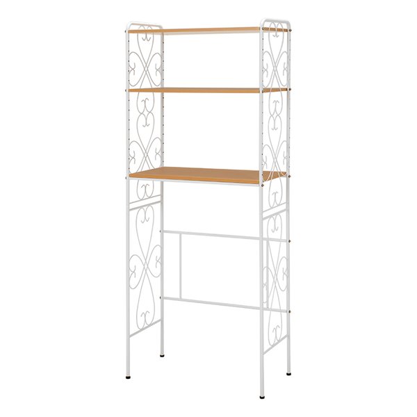 アイアンの曲線がエレガントで、洗濯機の上を有効活用できる洗濯機ラック。