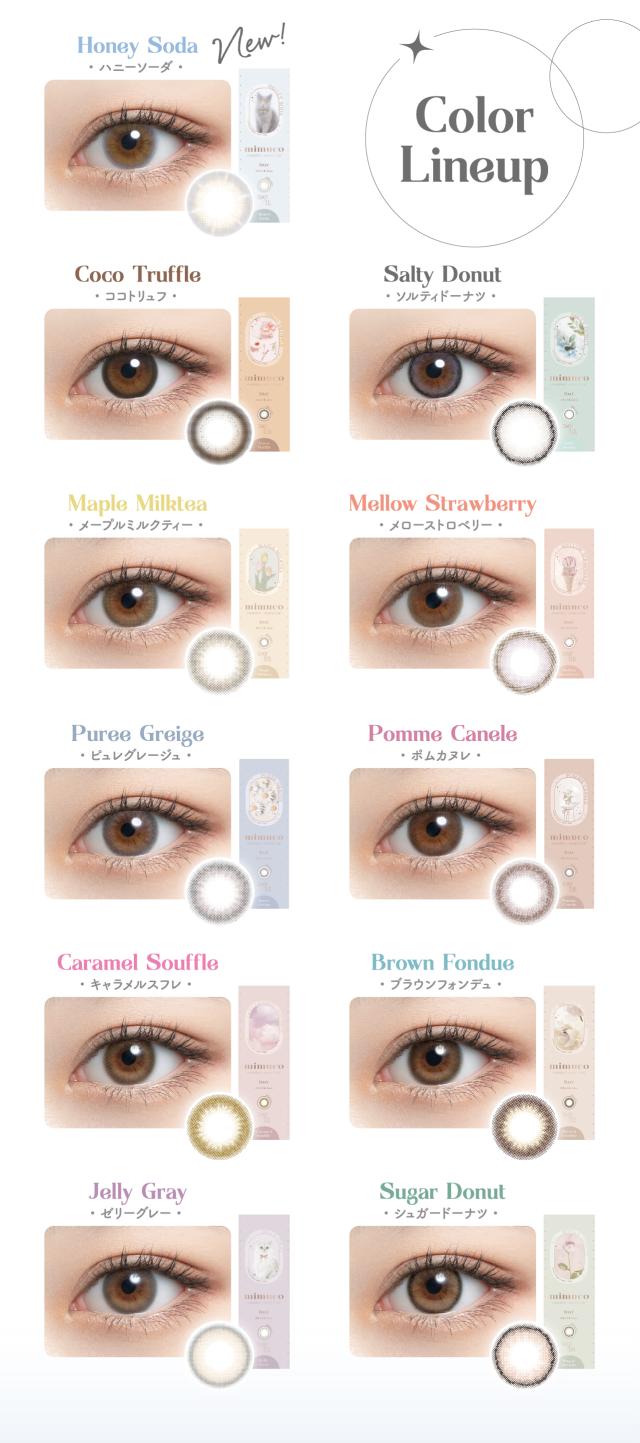 ■カラー キャラメルスフレ/ブラウンフォンデュ/ゼリーグレー/シュガードーナツ/メープ/ミルクティー/メローストロベリー/ピュレグレージュ/ポムカヌレ/ココトリュフ/ソルティードーナツ/ハニーソーダ