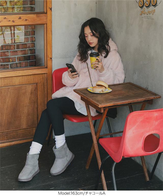 ショート丈ムートンブーツ H566 レディース シューズ ファー ローヒール フラットソール カジュアル 秋冬 歩きやすい ショートブーツ ファー 黒 ショート くつ ボア 疲れにくい スノーブーツ 40代 50代