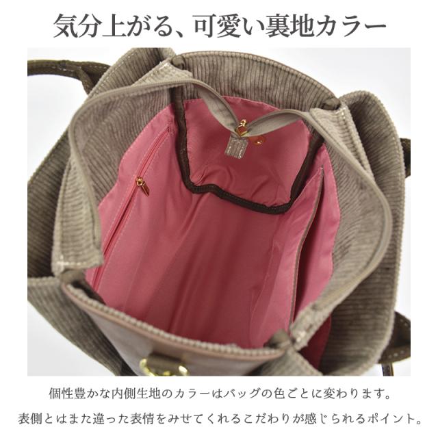 | 素材 | ハンドル部:帆布生地 外側:コーデュロイ生地 PUレザー 内側:生地 |