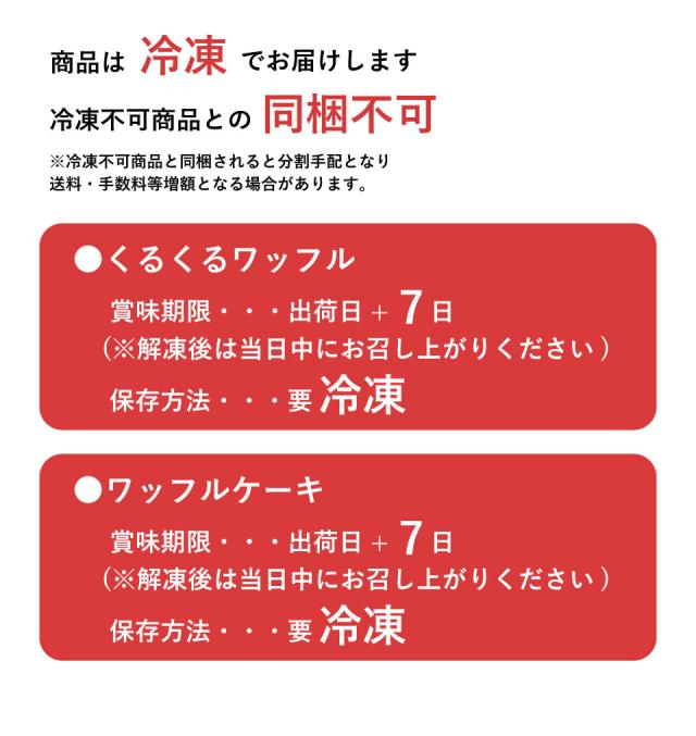 ●保存方法:〇くるくるワッフル:要冷凍(解凍時間目安…冷蔵庫で約5時間)