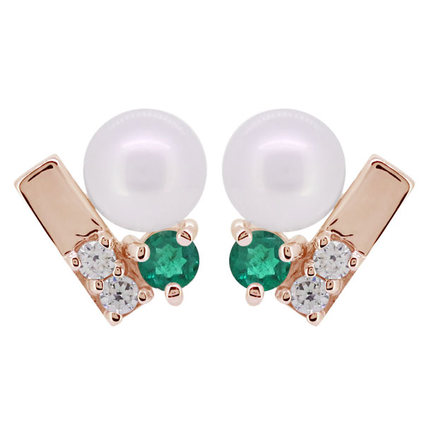 5月誕生石エメラルドを使用した18金製のパールピアスです。