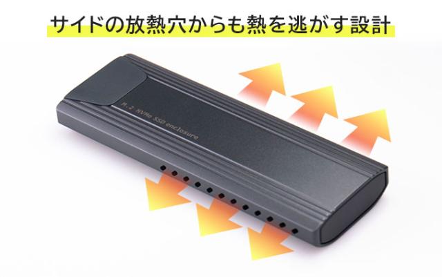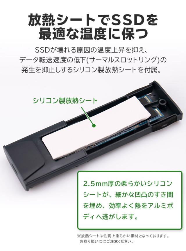 ・SSDへのデータアクセス中はケースの表面も高温になりますので、直接触る際にはご注意ください。