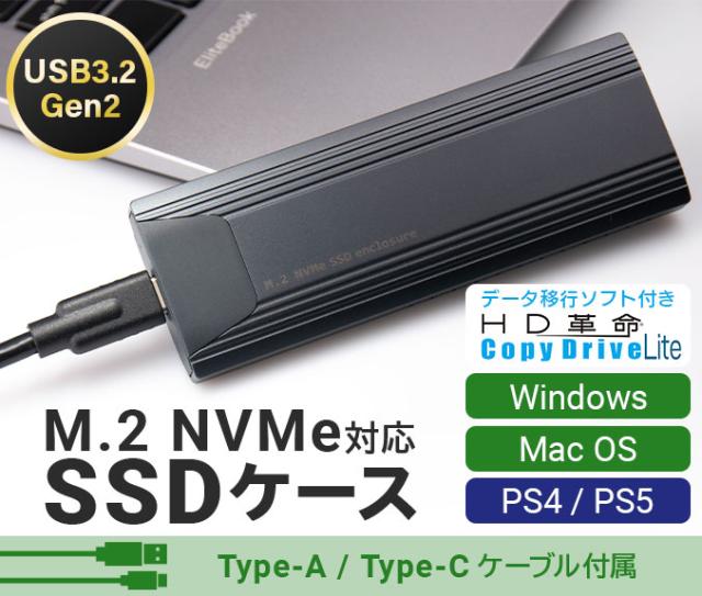 高速データ転送規格NVMeに対応しており、USB3.2 Gen2の性能を最大限発揮することができるM.2 SSDケースです。