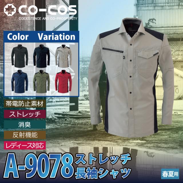 コーコス 作業服 秋冬用 A-9078 ストレッチ長袖シャツ 4L-5L