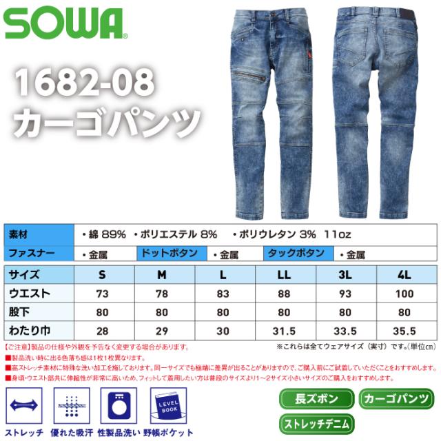 桑和 SOWA 作業服 秋冬用 1682-08 カーゴパンツ 3L