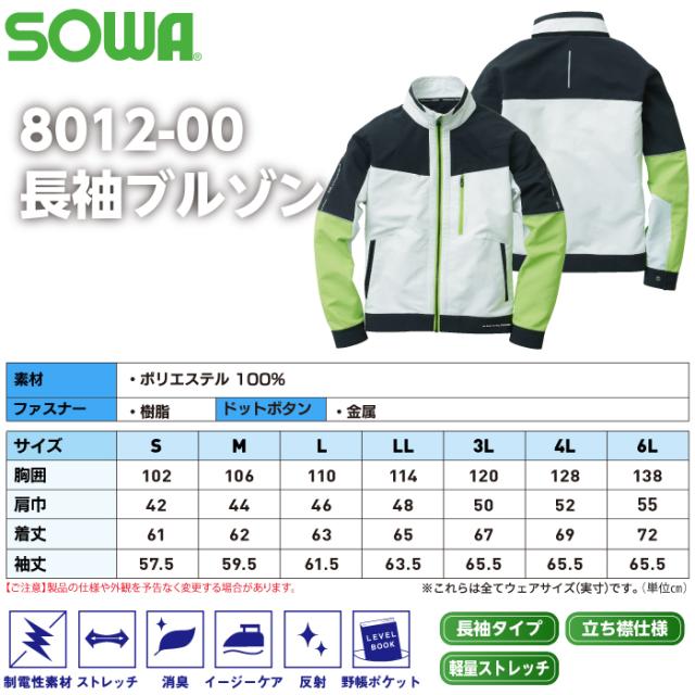 桑和 SOWA 作業服 秋冬用 8012-00 長袖ブルゾン 4L
