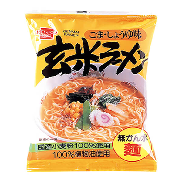 健康フーズ 玄米ラーメンは、国産小麦粉に玄米配合の無かん水麺を使用しています。