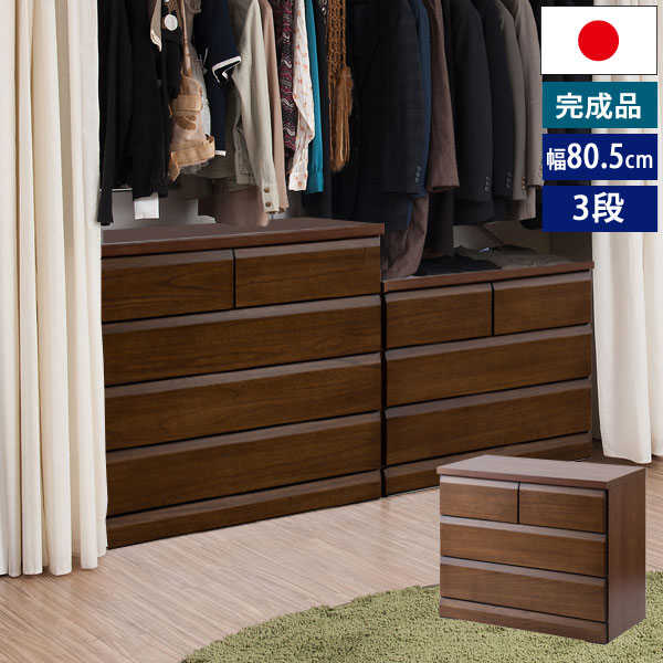 クローゼットチェスト ダークブラウン 幅80.5cm 3段 収納家具 日本製 完成品 クローゼットタイプ 隠しキャスター付 SA-0037-NS