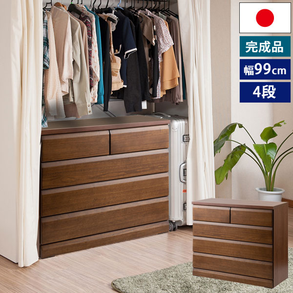 クローゼットチェスト ダークブラウン 幅99cm 4段 収納家具 日本製 完成品 クローゼットタイプ 隠しキャスター付 SA-0040-NS