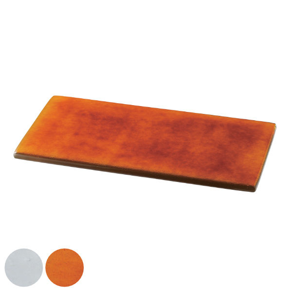 鮮やかな色彩が魅力のガラス製のトレーです。立ち上がりのないシンプルなデザインで使いやすく、テーブルをスタイリッシュに演出します。