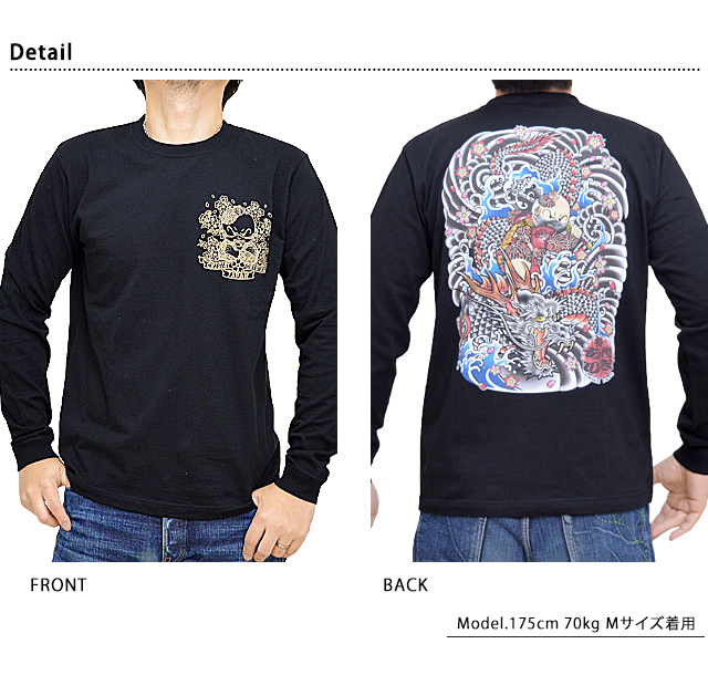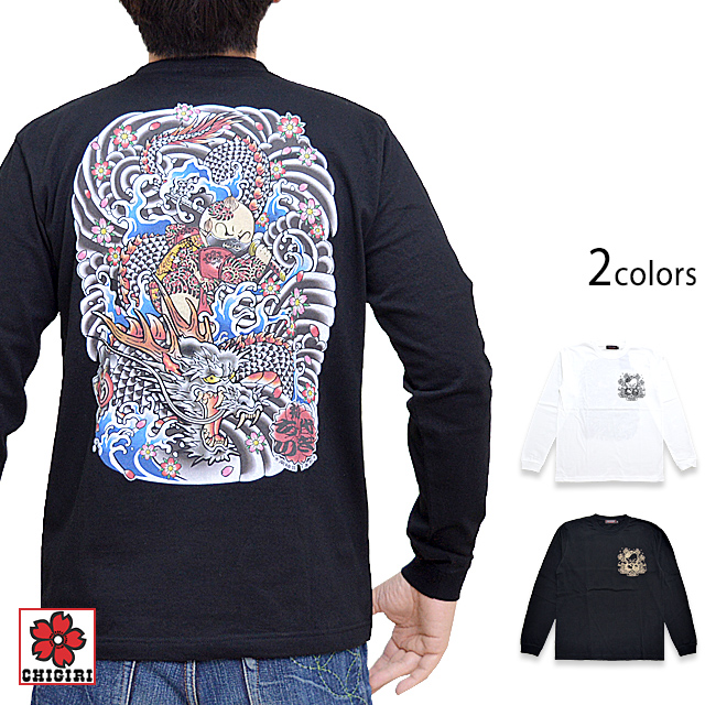 波嵐ちぎり&龍インクジェットロングTシャツ CHIGIRI CHL47-591 和柄 和風 刺青 ちぎり チギリ ロンT
