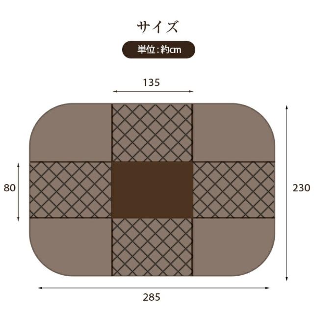 ●サイズ/約幅230×奥行285cm、ダイニングこたつテーブル幅135cm用