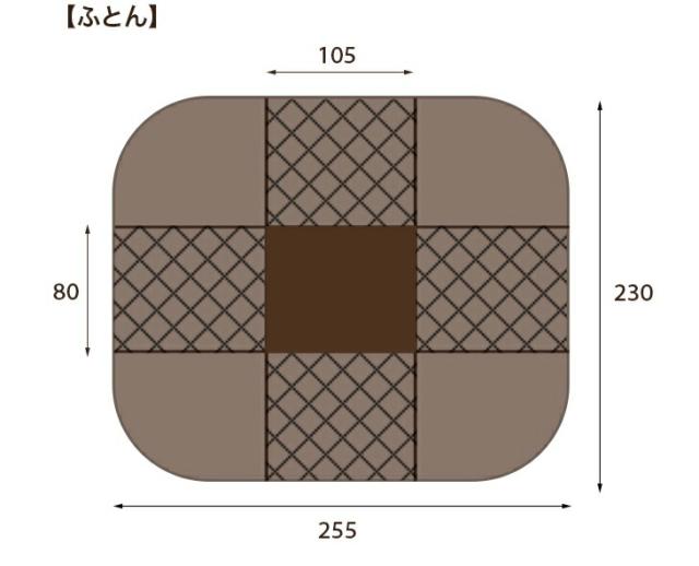 ●サイズ/テーブル:約幅105×奥行80×高さ70cm、ヒーター寸法:約幅29×奥行29×高さ5cm、ふとん:約幅230×奥行255cm、チェア(1脚):約幅56.5×奥行55.5×高さ79cm、座面高:41cm