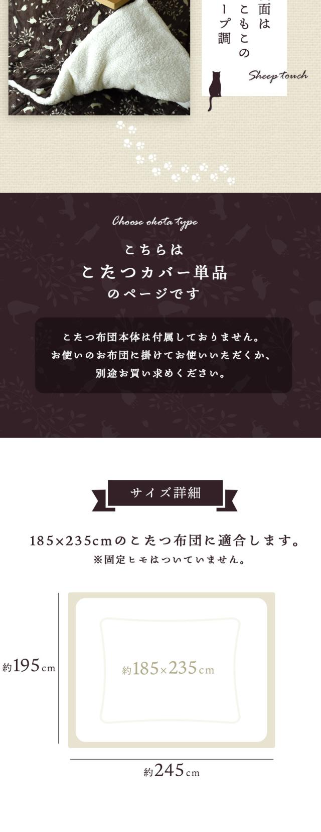 こたつ布団カバー 長方形 あったか 冬 かわいい おしゃれ 猫柄 ねこ ミャオリラ こたつカバー 約195×245cm フランネル ねこ柄