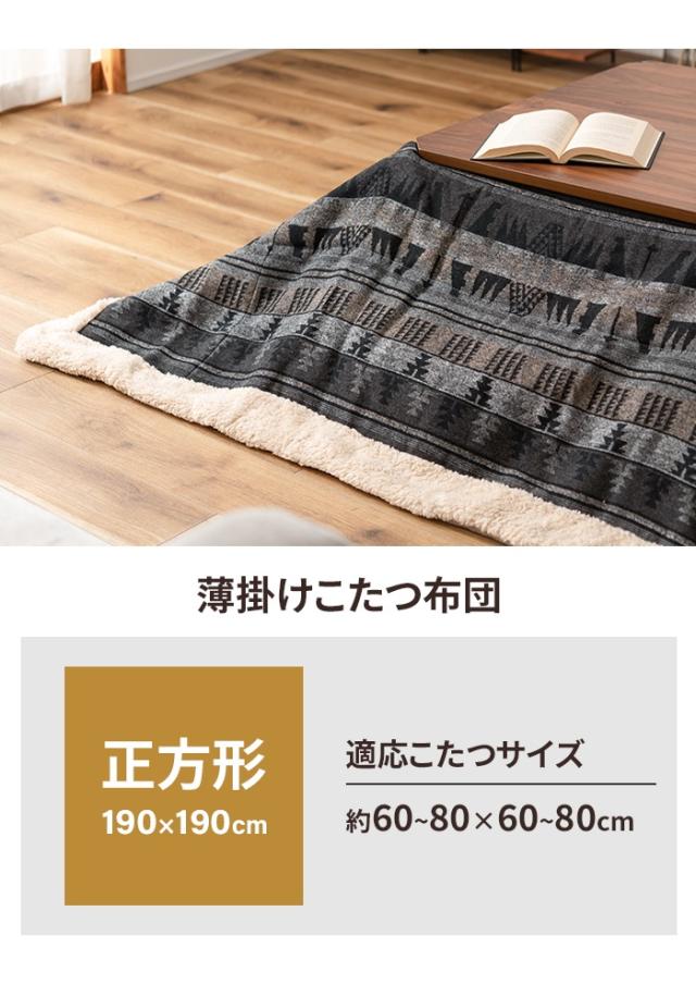 薄掛コタツ布団 正方形 幅190 奥行190cm インテリア こたつ こたつ布団