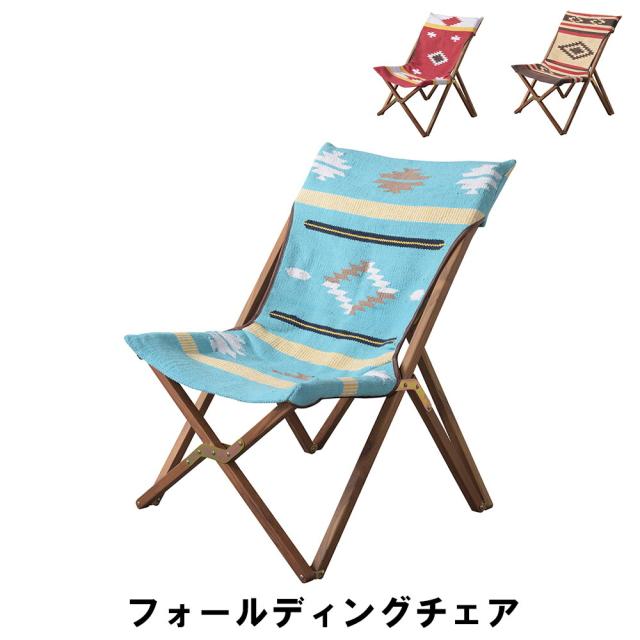 エスニック調の雰囲気が目を惹くおしゃれな折りたたみチェア。