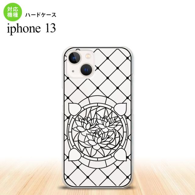 iPhone13 Pro iPhone13 共用 背面ケース カバー ステンドグラス風 蓮 ホワイト ステンドグラス風