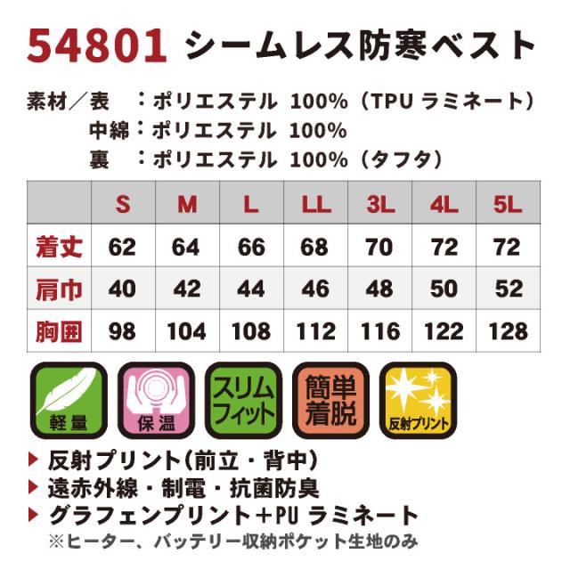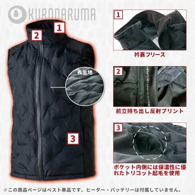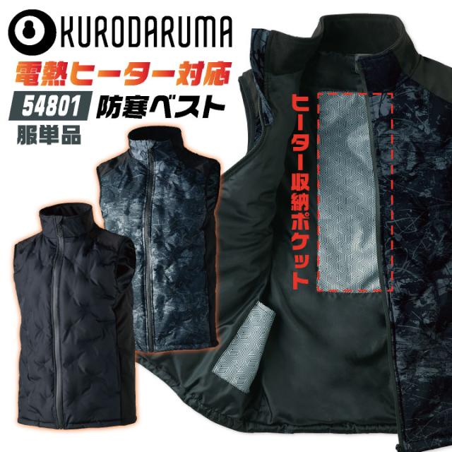 54801 電熱ヒートベスト クロダルマ ヒーターベスト単品 ヒートベスト 電熱ベスト 防寒ベスト 軽量 保温 作業着 作業服 KURODARUMA 秋 冬用
