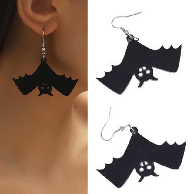 プラッチック製の黒い蝙蝠(コウモリ)をデザインしたファッションピアス。