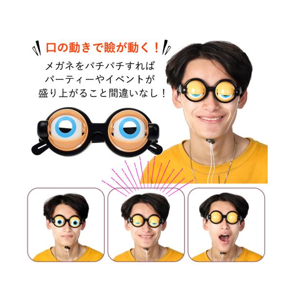 メガネから目が飛び出たデザインで掛けるだけで強烈なインパクト。